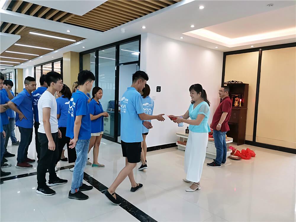 吉祥开业,大富启源。2019年9月3日,beat365在线登录隆重举行了“乔迁开业仪式”。一大早,办公、车间的人员都齐聚办公室拜财神,从老板娘手里领过小红包,大家一起发发发!