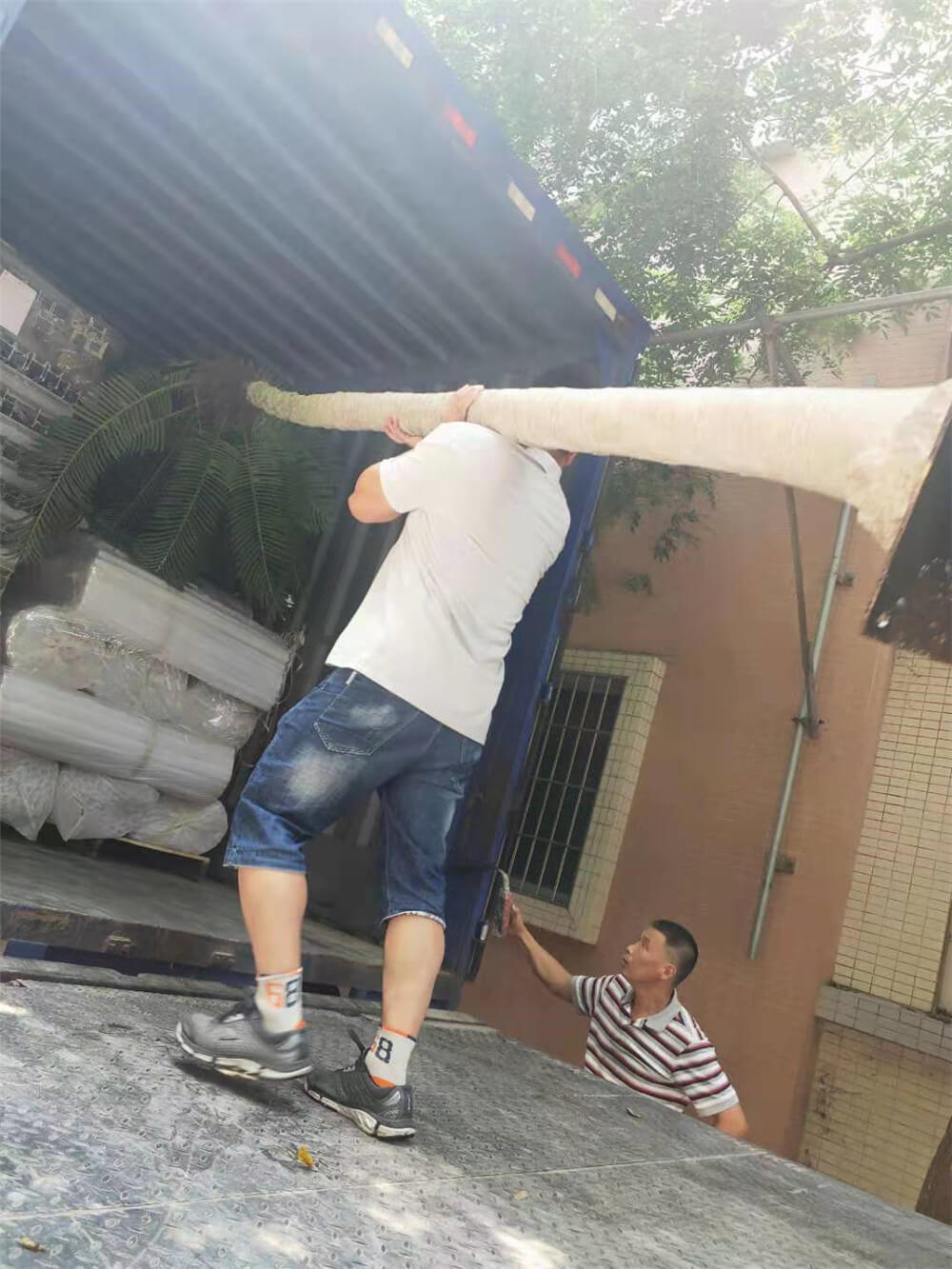 ▲辛苦啦!为乔迁而出汗出力,“露肉”的帅哥们。