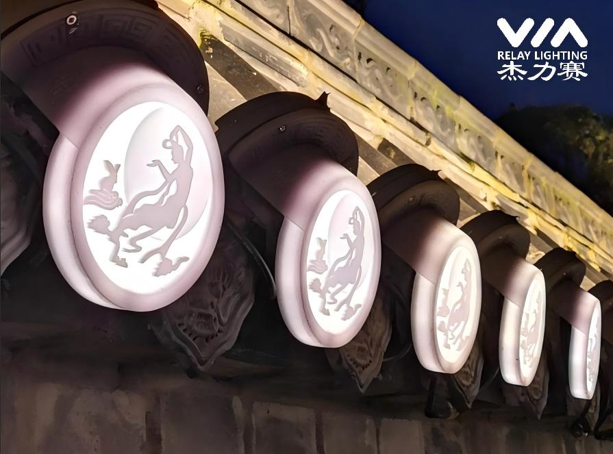 瓦当灯能将光线温和、均匀地投射于瓦面及建筑轮廓,
